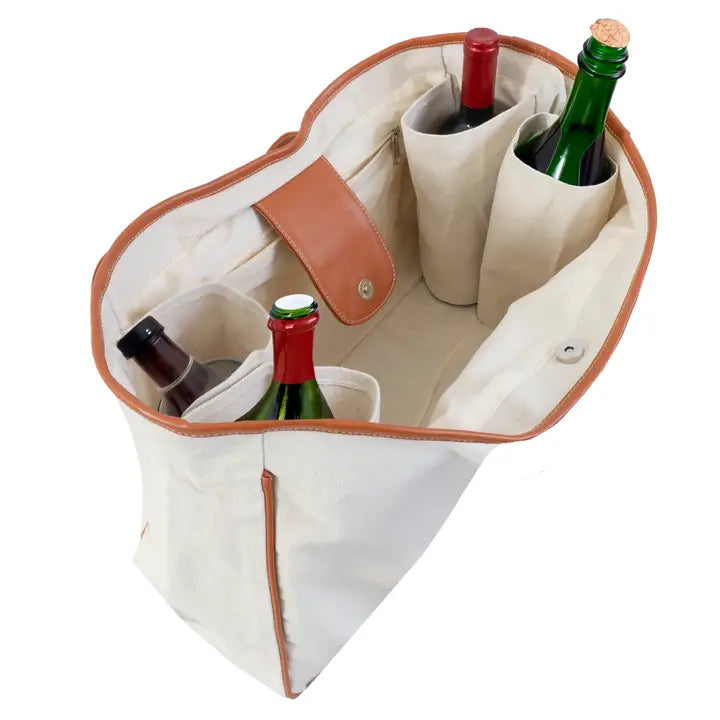Our bestselling canvas tote is back and better than ever with an added feature. Bottle Compartments! This upgraded design features bottle compartments, making it the perfect companion for picnics, shopping trips, and more. Stylish yet practical, it’s a must-have accessory for anyone on the go and an excellent gift idea for the holiday season or any special occasion. BODY: 100% 16 OZ. Cotton Canvas TRIM & HANDLES: 100% Faux PU Leather